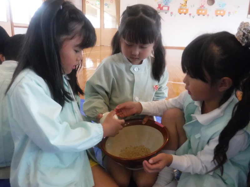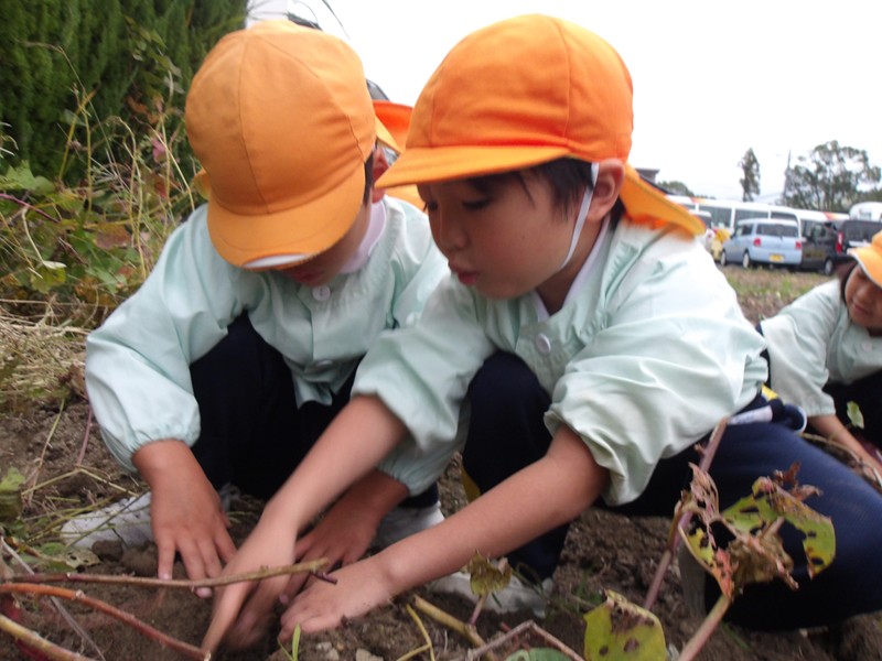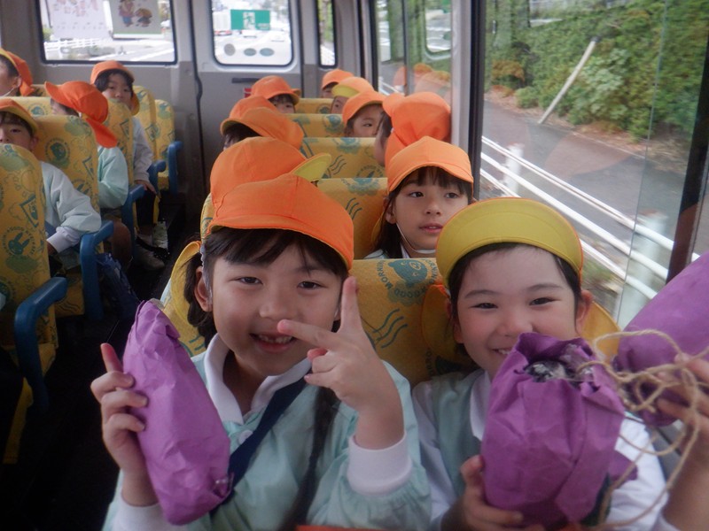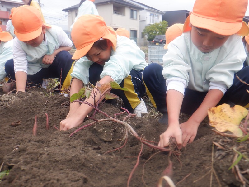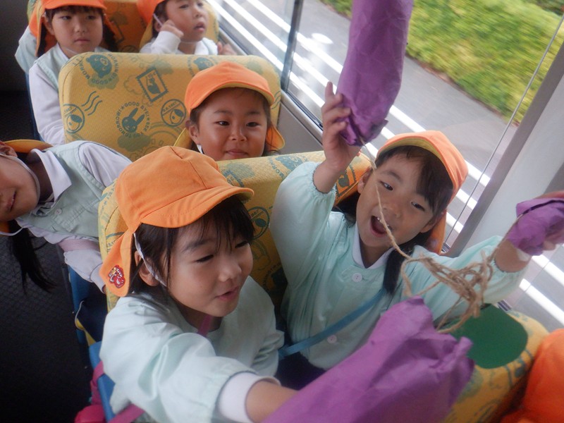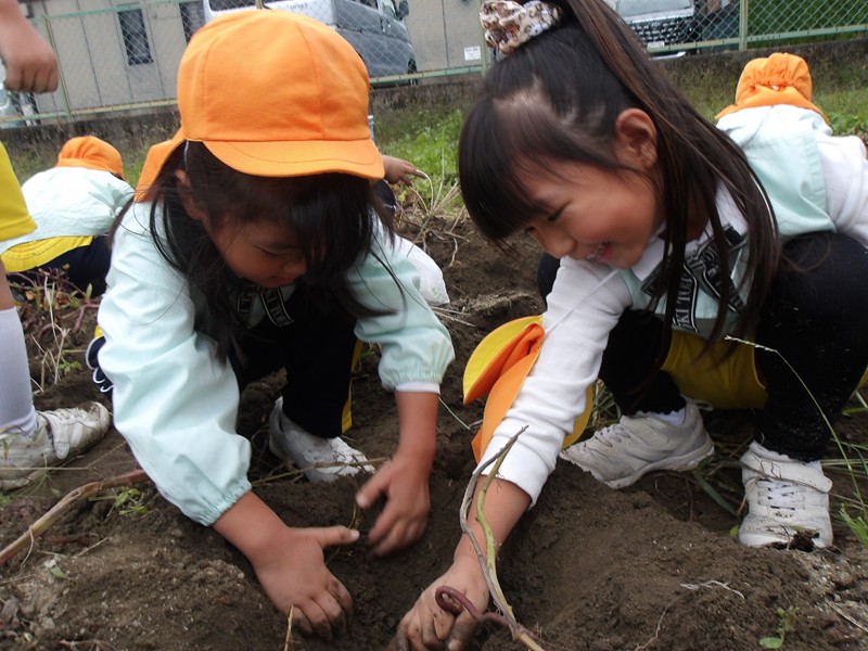 10日は年少組が、17日は年長組が、18日は年中組がバスに乗って岡崎の農園まで大根掘りに出掛けました。バスの中では絵本を読んで大根の実り方を伝えたり、大根クイズをしたりして知識を深めていきました。みんなで大根掘りの練習もしましたよ。大根の上の方より下の方が辛いこと、葉っぱも食べられることを伝えていくと、お母さんに教えてあげようと真剣に聞く様子がありました。年長児は知っている子が多くおり昨年の大根掘りで伝えたことを覚えてくれていたんだと感心しました。