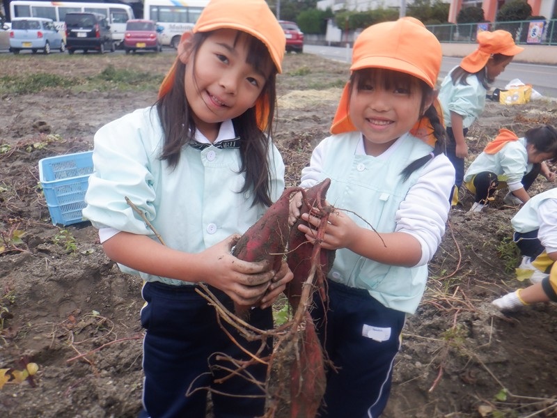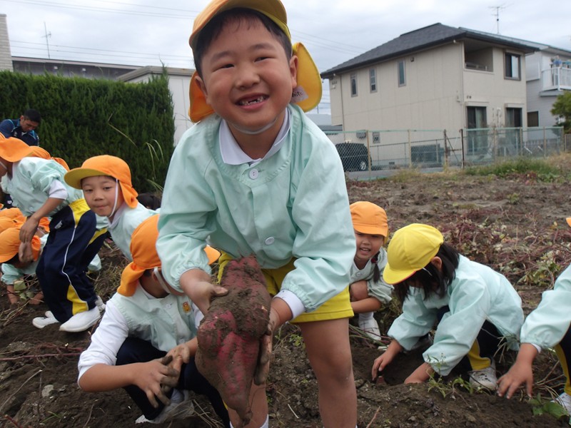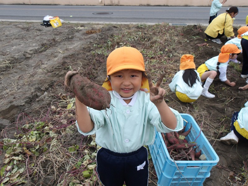 長くて大きくて重くてなかなか抜けなかった大根は、お助けマンの園長先生に手伝ってもらったお友だちもいたね。 帰る前に「上の方は甘いからサラダが良くて、真ん中は水分たっぷりだからおでん、下の方が辛いからスープや味噌汁ががぴったりなんだよ。そして葉っぱも食べられるんだよ!」と張り切って教えてくれる子がいました。しっかり先生の話を聞いていますね。感心しました。持ち帰った大根をご家庭でも色々なお料理に変身させてみてくださいね♡