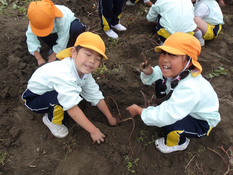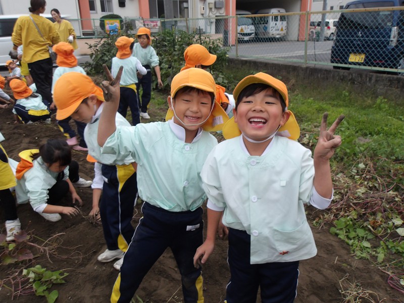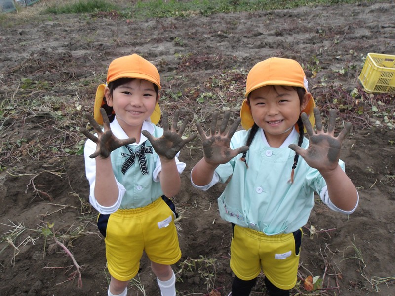 年長さんは、幼稚園での農園活動はだいこんほりが最後になります。入園してから3年間でいろんな農園活動をしたね。じゃがいも、たまねぎ、さつまいも、だいこん・・・。すべて理事長先生や郁代先生、園長先生が丹精込めて育ててくれました。苦手だったお野菜も食べれるようになった子もいるよね。最後に感謝の気持ちをこめてしっかりお礼を言うことができたね。