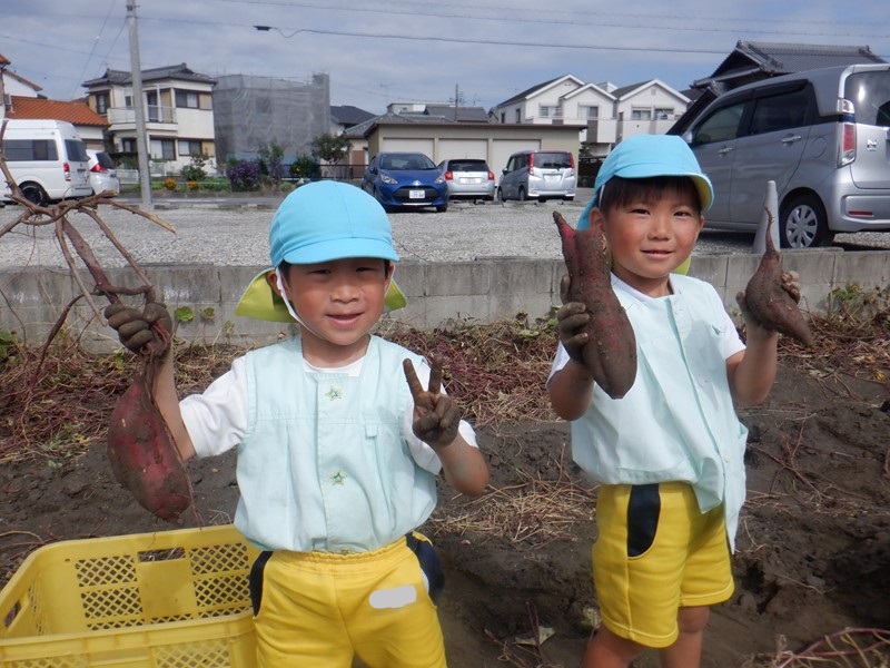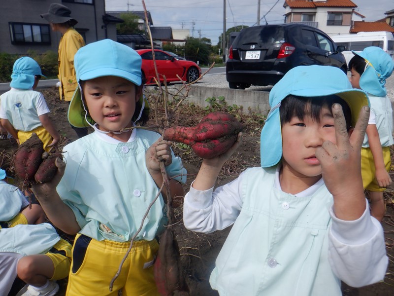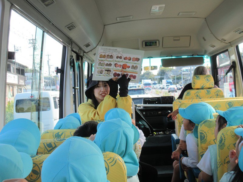 いろいろな動物を間近で観てふれ合うことができて子ども達はとっても楽しかったようです。最初怖がっていた子でも自分でエサをあげることができた、動物を触ることができたということが自信になり、次第に積極的に動物に関わる姿が多くみられました。どんぐりもたくさん落ちていましたよ。みんなで拾ったので幼稚園でも遊んで秋を感じていきたいと思います。愛知牧場は近いので家族で出掛けることもきっとあることと思いますが、お友だちと行った愛知牧場もとても楽しめました。おうちでも今日の話をたくさん聞いてあげてくださいね。♡♡♡