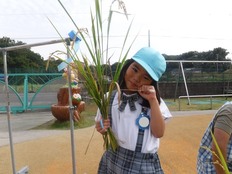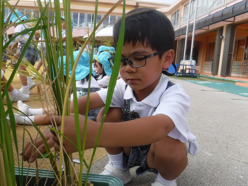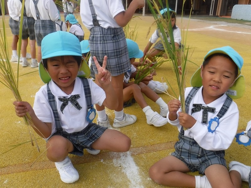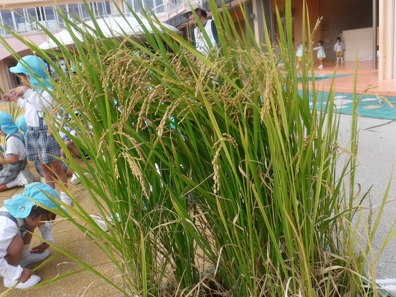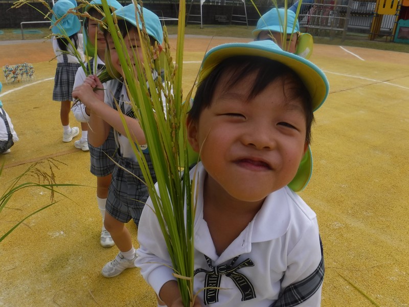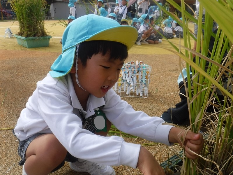 子供たちは稲穂を手にしながら「この中にお米が入ってるんだぁ…」「何個お米がついているかな?」とじっくり観察し、いろいろな発見をしていくことができました(●^▽^●)