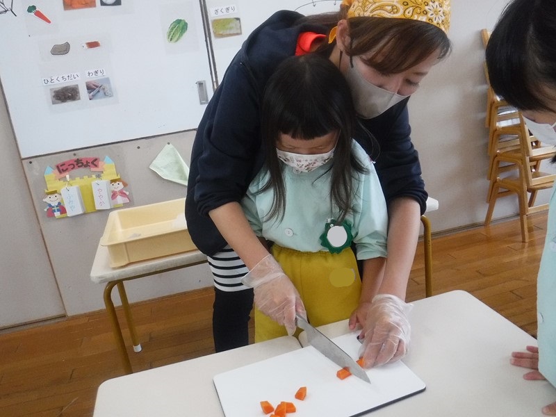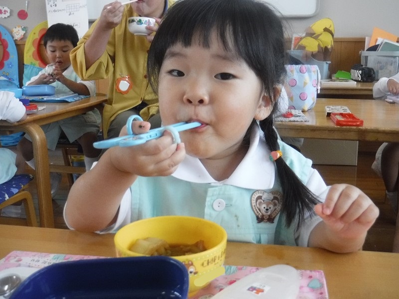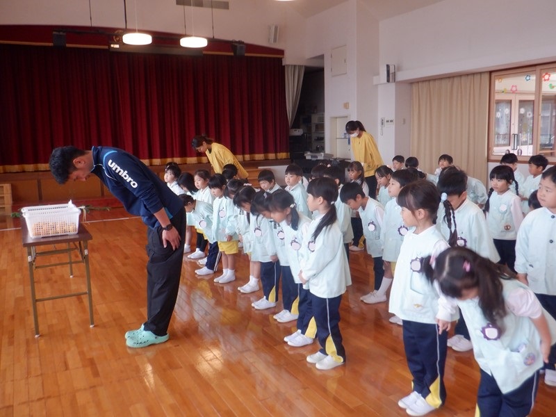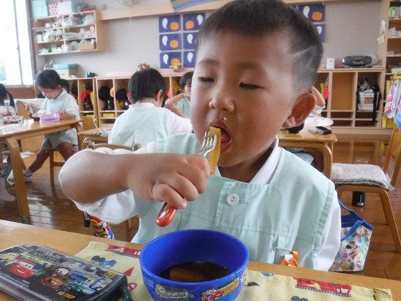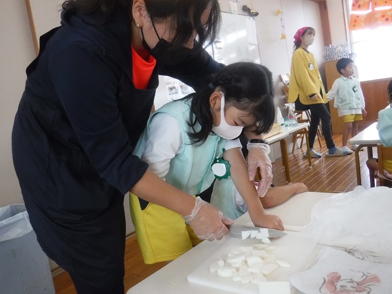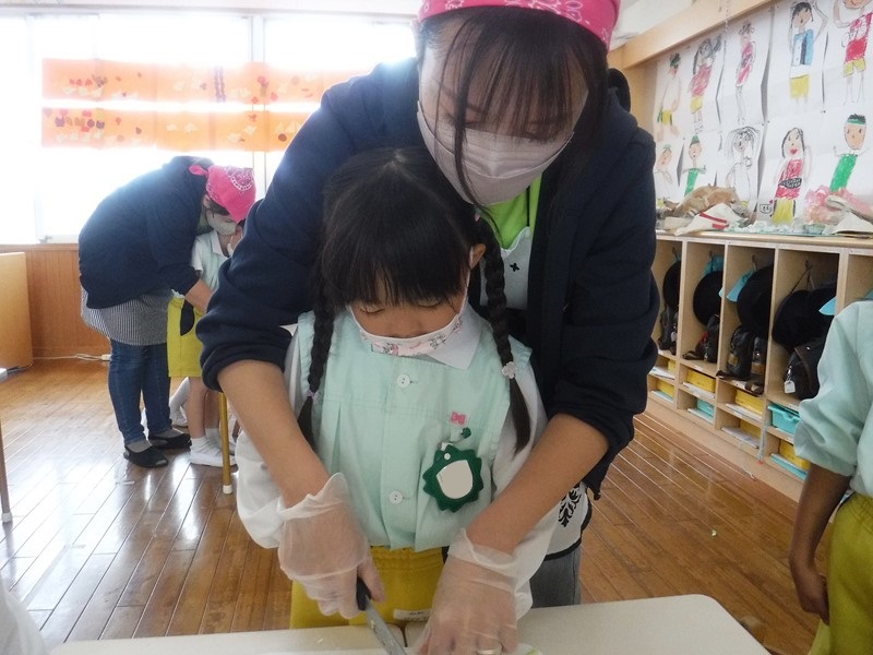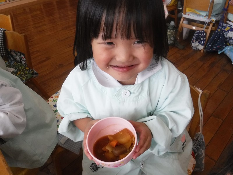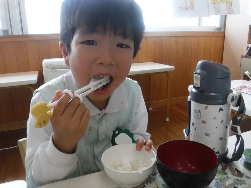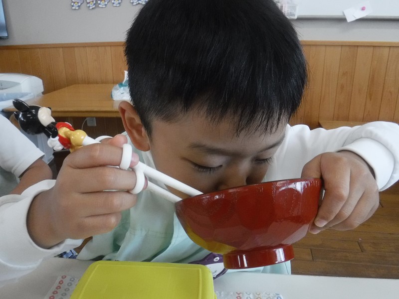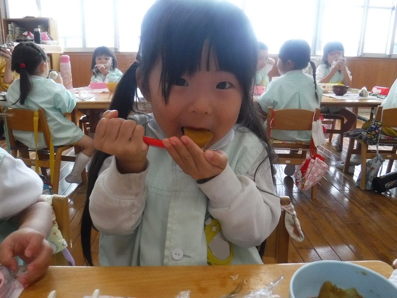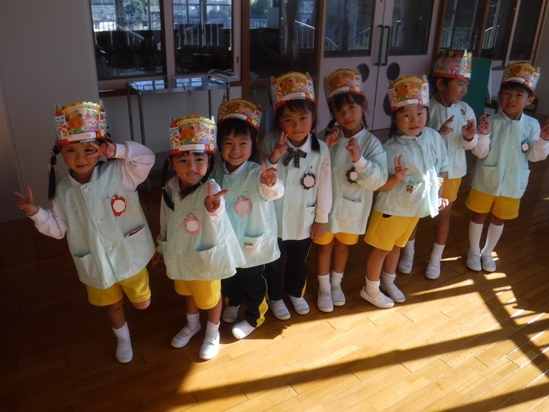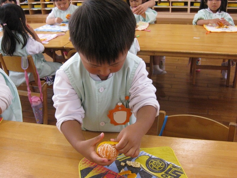代表の子が千歳飴を大切に受け取り、神様からもらったみかんも昼食の後に食べていきました。子ども達は「神様のみかん、おいしい~!」と大喜びでした☆普段はみかんが苦手な子も「神様にもらったみかんだから」と、口の中に入れたり、一粒は食べることができました。ひよこぐみのお友だちも自分でじょうずにみかんの皮がむけたね。