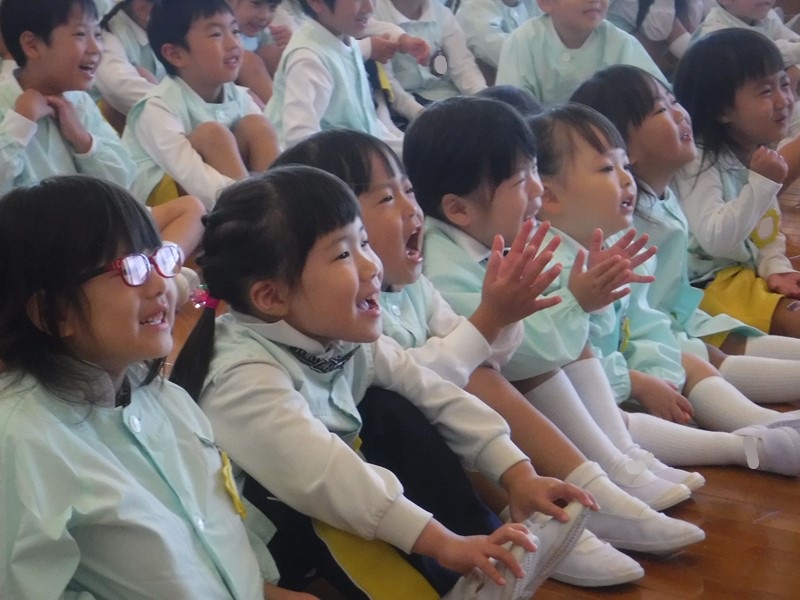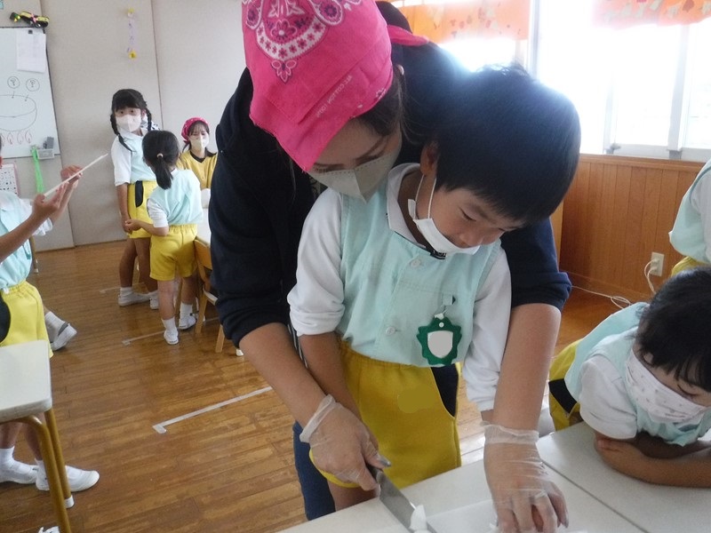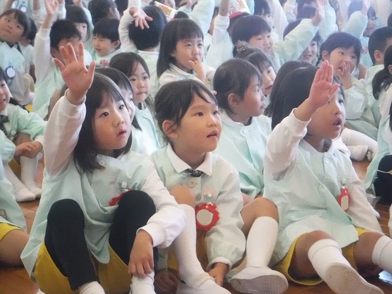 年中児・年長児クラスは昨年幼稚園でご祈祷を受けた経験もある為、七五三への理解が高く「11月15日は何の日でしょうか?」と聞いていくと「七五三!」と張り切って答えてくれたり、千歳飴の意味も発言する姿がありました。さすがだね!