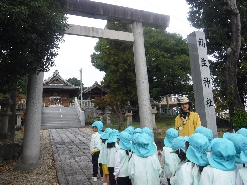 莇生神社の鳥居の前では「今から神様の家に入ります。」と伝えると、どの子も神聖な場所に入るということを感じている様子がありました。