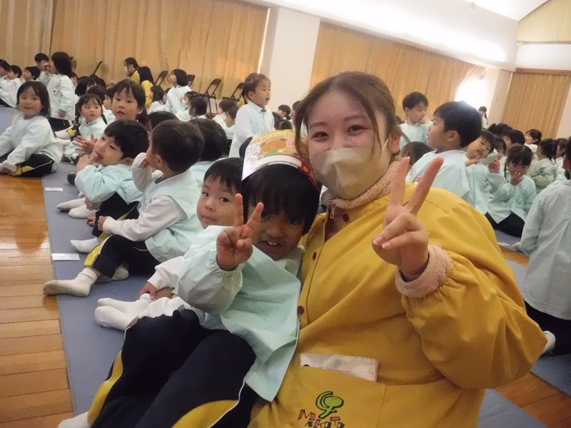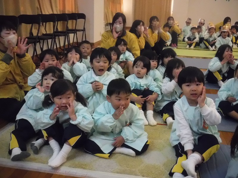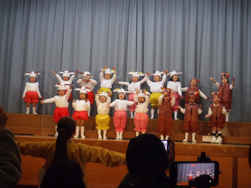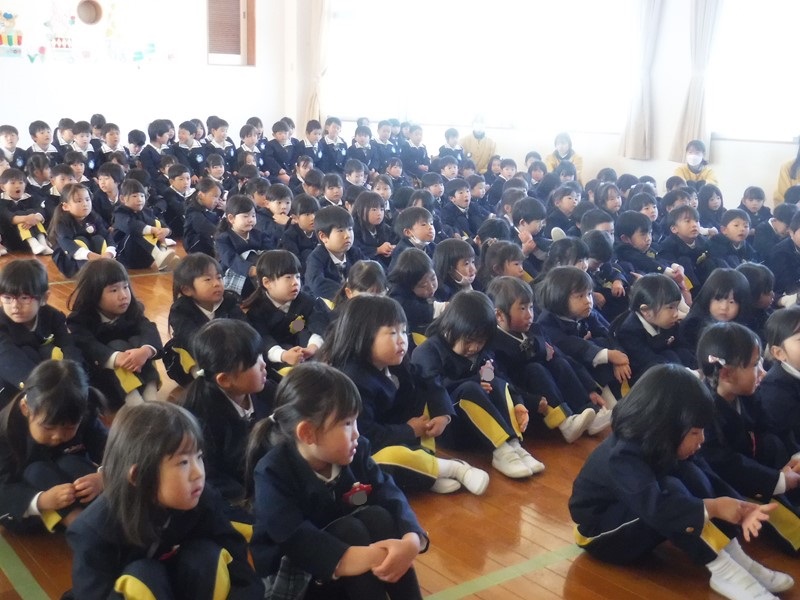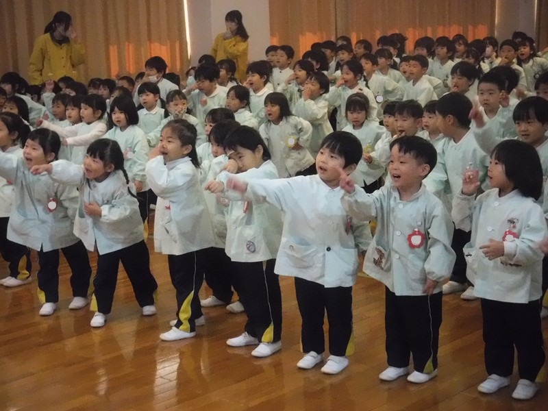 2学期は運動会に生活発表会、おいもパーティーにクリスマス会、もりだくさんの行事がありましたね。運動会、発表会では立派な姿をおうちの方に見せることができて成長を感じました。まこと第二幼稚園では保育室の換気、消毒をこまめに行い感染症の予防に努めてきましたが、ご家庭でもうがい、手洗いなど気を付けてくれたおかげで本日の終業式を迎えることができました。本当にありがとうございます(^∇^) 保護者の方々のご理解・ご協力があってこそです。感謝いたします。