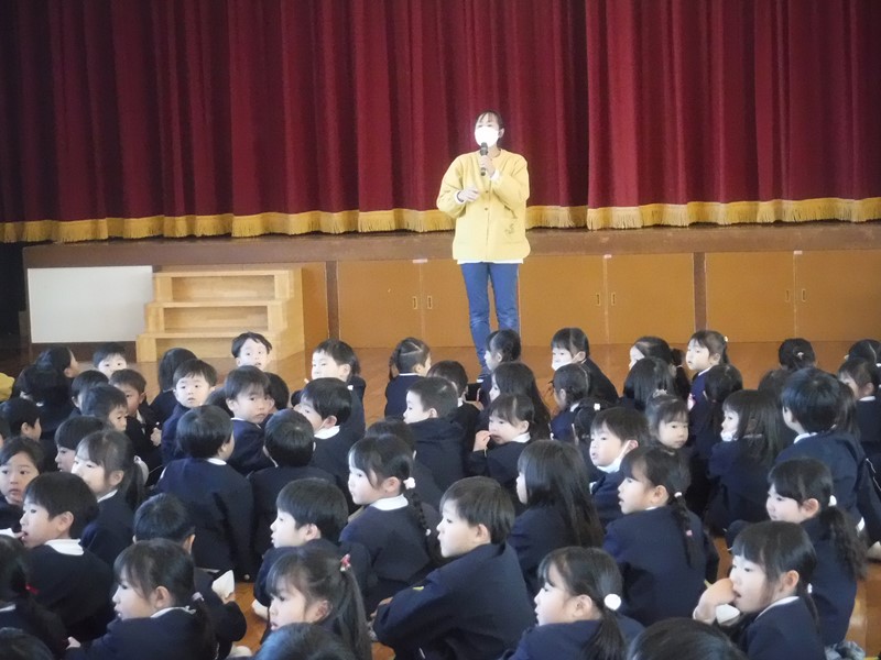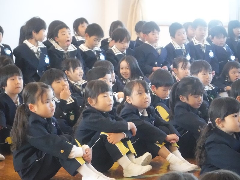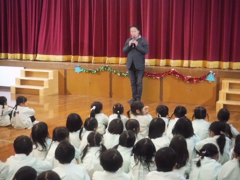式の中で冬休みの4つの約束(1、知らない人にはついていかないようにしましょう 2、規則正しい生活をしましょう 3、事故に気をつけましょう 4、食べ過ぎ・飲み過ぎに注意しましょう)を聞いていきました。すると、手を挙げて答えてくれるお友だちがたくさんいて感心しました。冬休みを楽しく過ごす為の大切な約束事です。先生も気を付けますね☆★☆