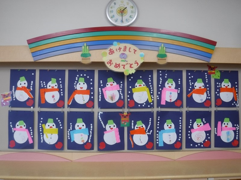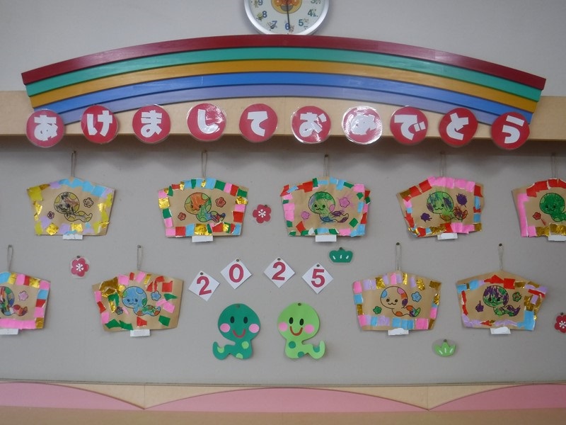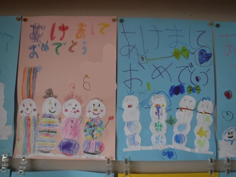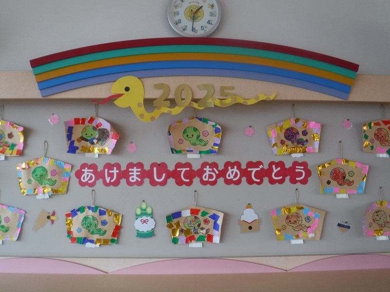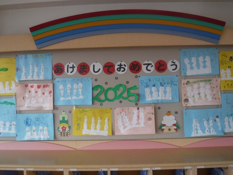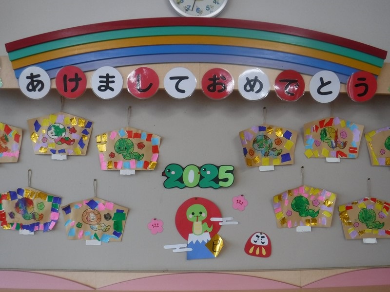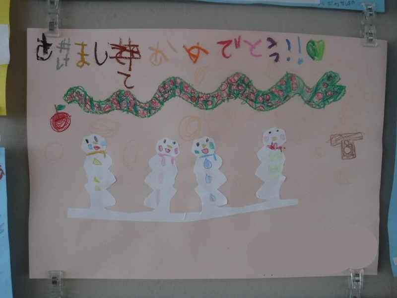 朝から「おはようございます!!」と元気いっぱい登園してくれる子がたくさんいました。先生達も「早くみんなに会いたいなー♡」とワクワクしていました。 自分から「あけましておめでとうございます!」と上手に新年の挨拶ができる子もたくさんいましたよ。