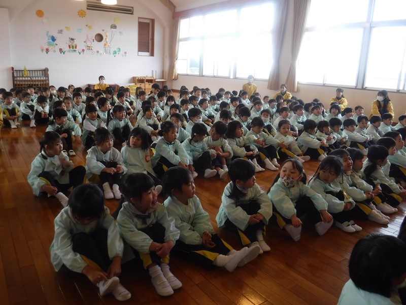 行事としては、豆まきやおんぶ(餅つき)、お別れ会やひなまつり会があります。それぞれの行事を思い切り楽しみ、園生活ではけじめをもって行動する場面も大切にしながら、子どもたち一人一人が成長できる学期となるよう、職員も新たな気持ちで頑張っていきます‼