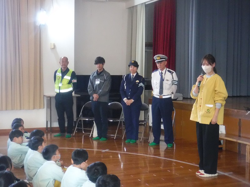 6日(木)に、豊田警察署の方とみよし市役所防災安全課の方が来て下さり幼稚園で交通安全教室を行っていきました。4月から小学校へ登下校する年長児のみ参加しました。
