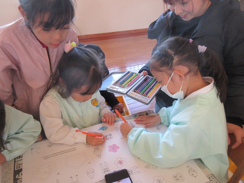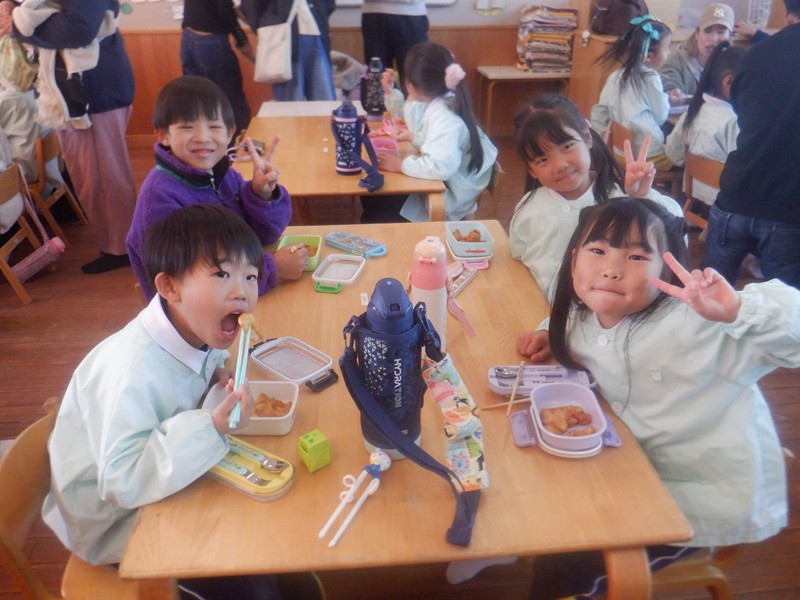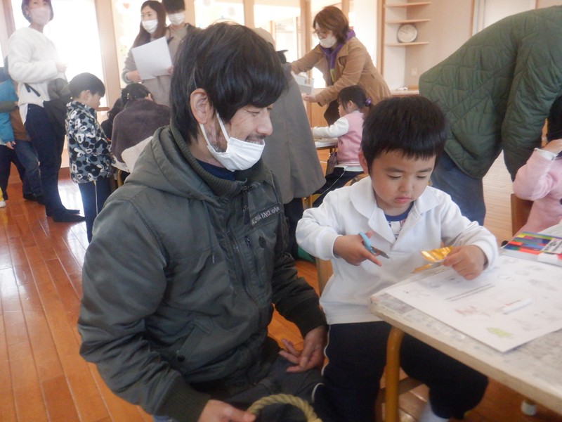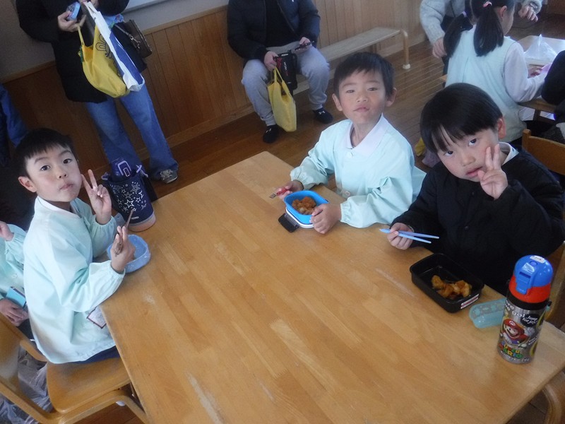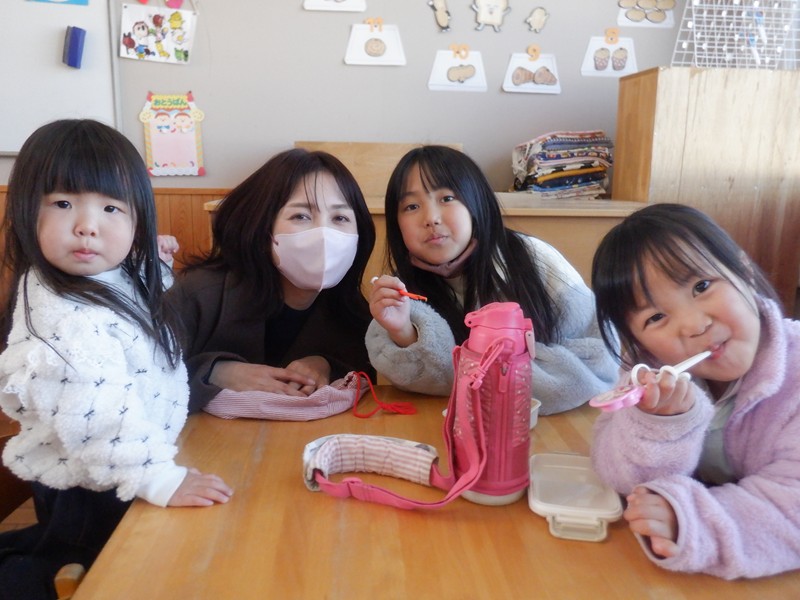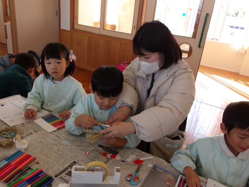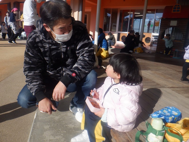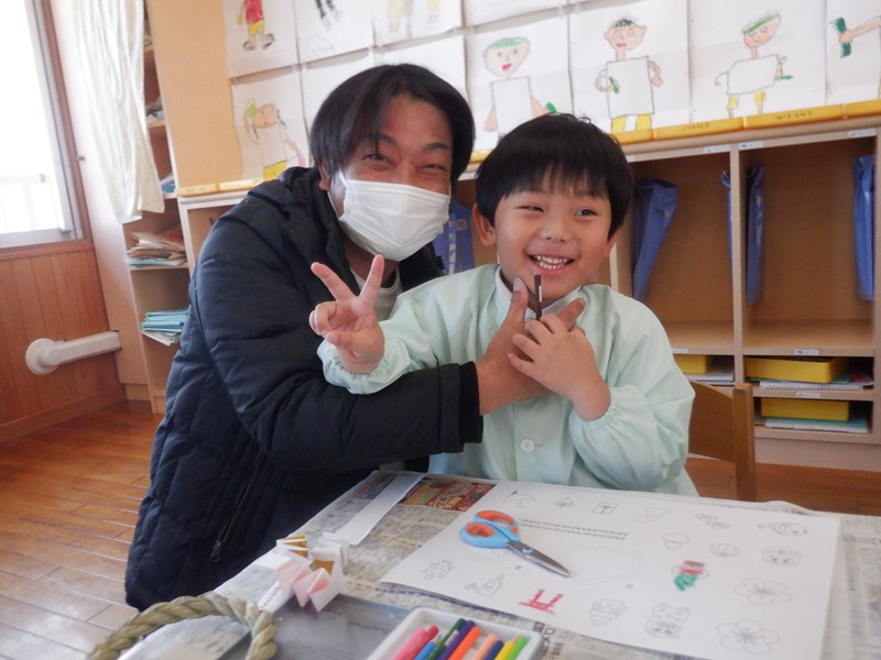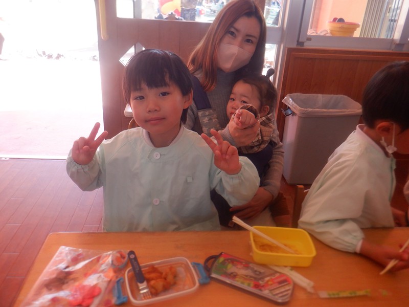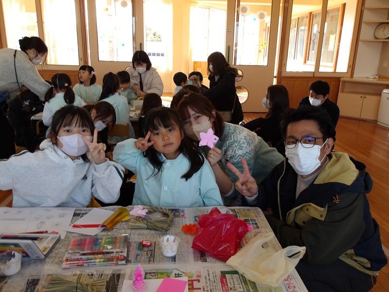 今日は「おんぶ」(お餅つきと親子製作)でした。今日は暖かくとても良い天気になりました。子どもたちは元気いっぱい!張りきって幼稚園に来てくれました(●^▽^●)