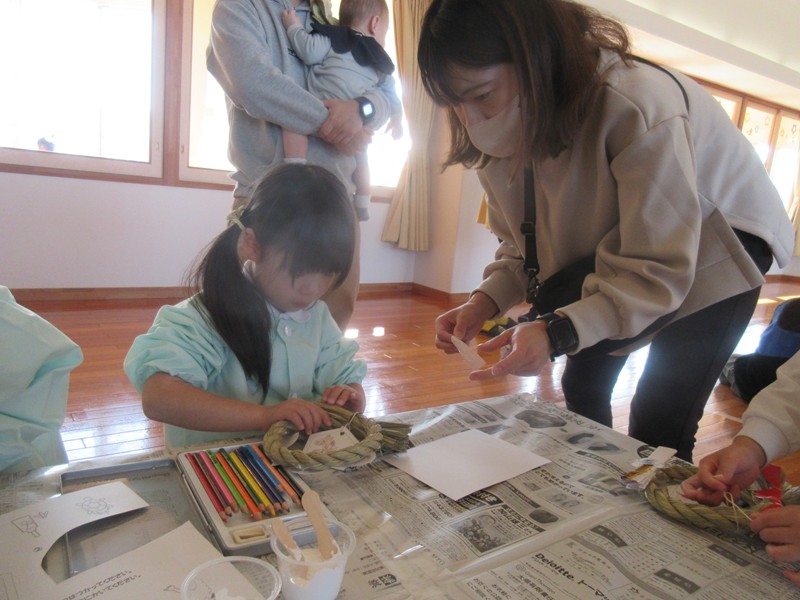 親子製作はしめ縄を使って「季節飾り」を作っていきました。自分で作ったクリスマスリースやお正月に飾るしめ縄は愛着も倍増ですよね☆★☆世界で一つだけの素敵な季節飾りが出来上がりましたね♪ご家庭でも是非飾って下さいね!!