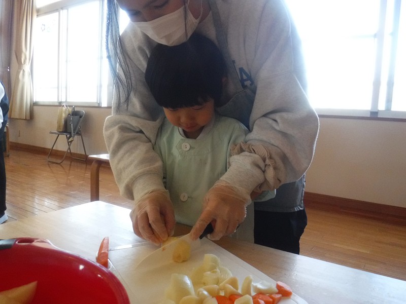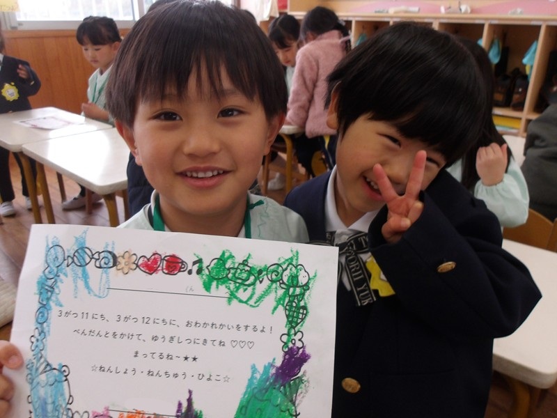 ☆明日は、お別れ会です♪ 年長さんが幼稚園で過ごすあと5日を楽しんでもらおうと、ひよこさん、年少、年中のお友だちがお別れ会を計画しています。 4日には年少さんからお別れ会の招待状をもらった年長さん。ペンダントをかけてもらったり、招待状をもらってにこにこしている年長さんをみて年少さんもうれしくなちゃったね。 そして今日はPTAさんに協力してもらい、明日食べるカレーの材料切りを行いました。ひよこさんは、10kgのじゃがいもを洗ってくれたよ。 お別れ会、年長さんが喜んでくれるかな。楽しみにしていてね‼ Twitter Facebook Del.icio.us Reddit